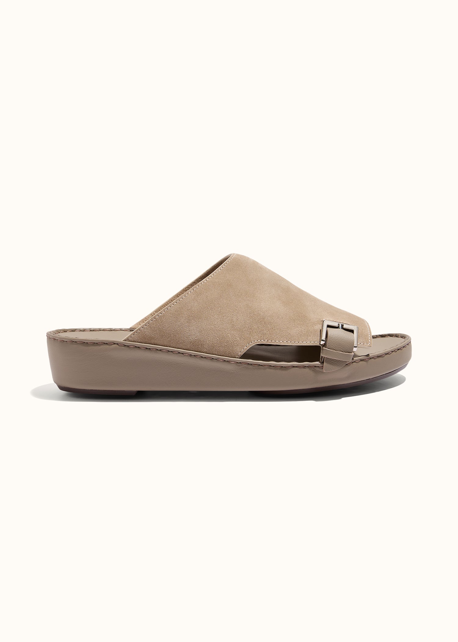 A new foundation for modern tradition. The Cradle Sandal introduces a semi-mule silhouette that reshapes the classic Arabic sandal with contemporary precision. Its signature side buckle secures the upper in one decisive detail, simple, strong, and intentional. Designed for the man who values quiet elegance with undeniable presence.