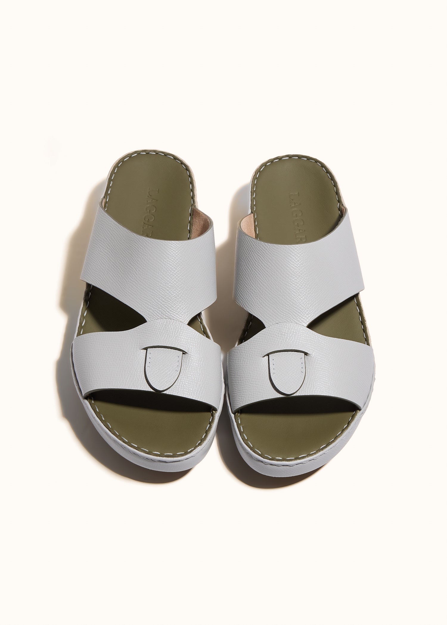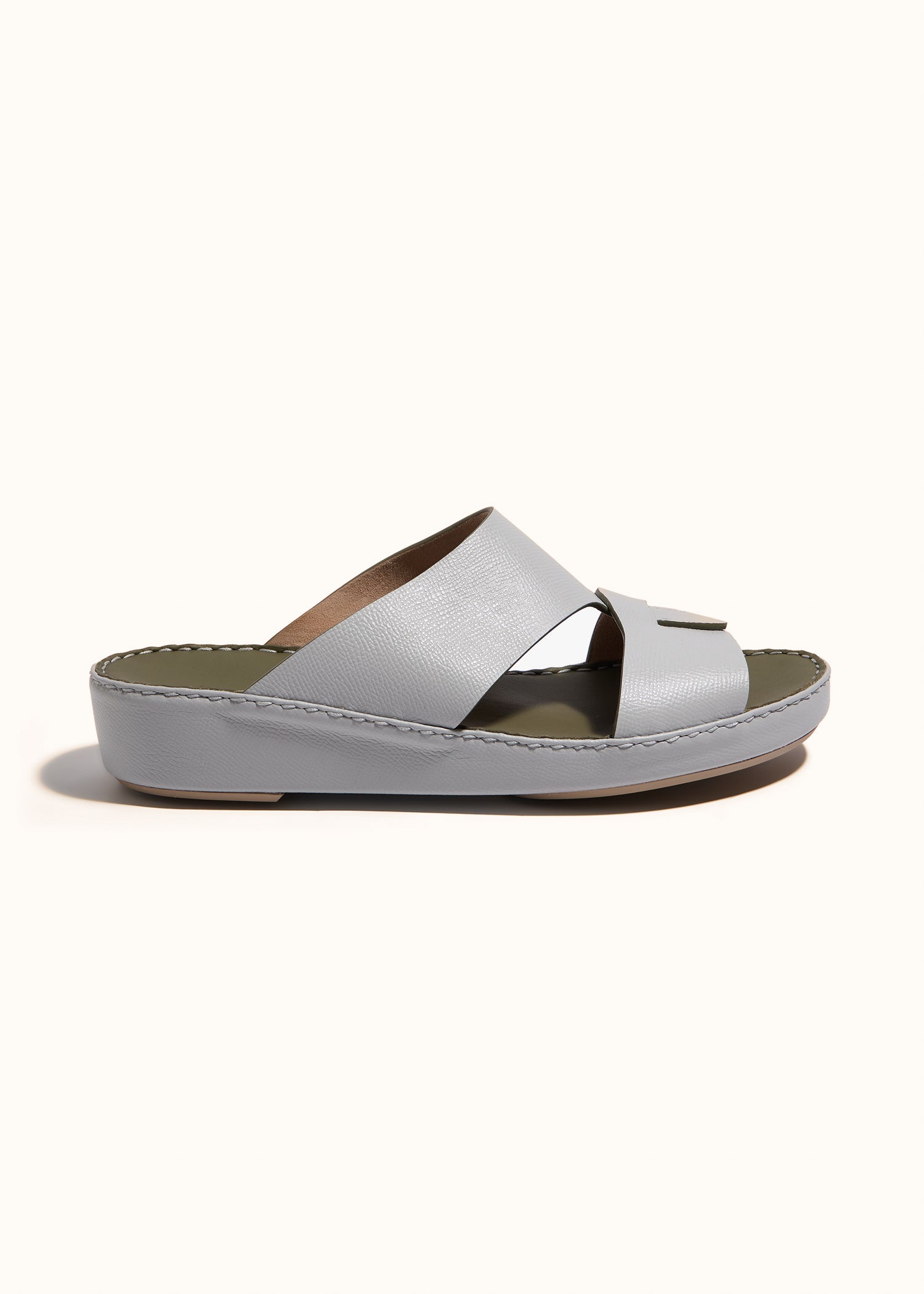 Envelope Belt Sandal crafted from textured Epsom leather, featuring a distinctive envelope-cut and contrast edge finishing. Minimal, modern, and refined. Designed for effortless everyday sophistication.