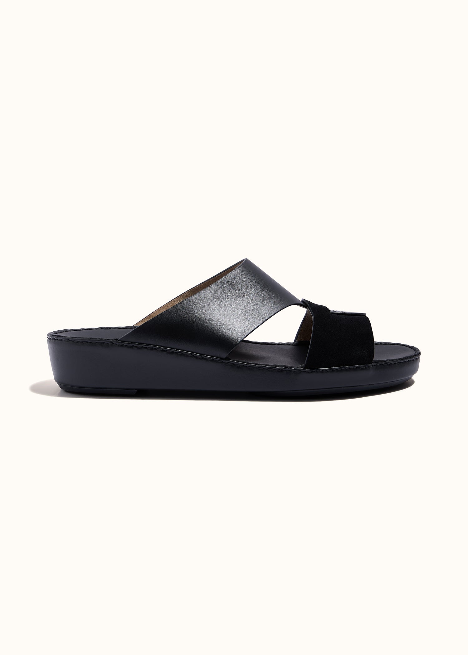 Inspired by the envelope cut, the Envelope Belt Sandal in Nero redefines modern elegance through its distinctive form and minimal stitch detailing. Expertly crafted from a refined mix of LAGGAR PureCalf leather and Suede, it offers a sophisticated contrast in texture and tone. Designed for those who appreciate subtle uniqueness and contemporary design.