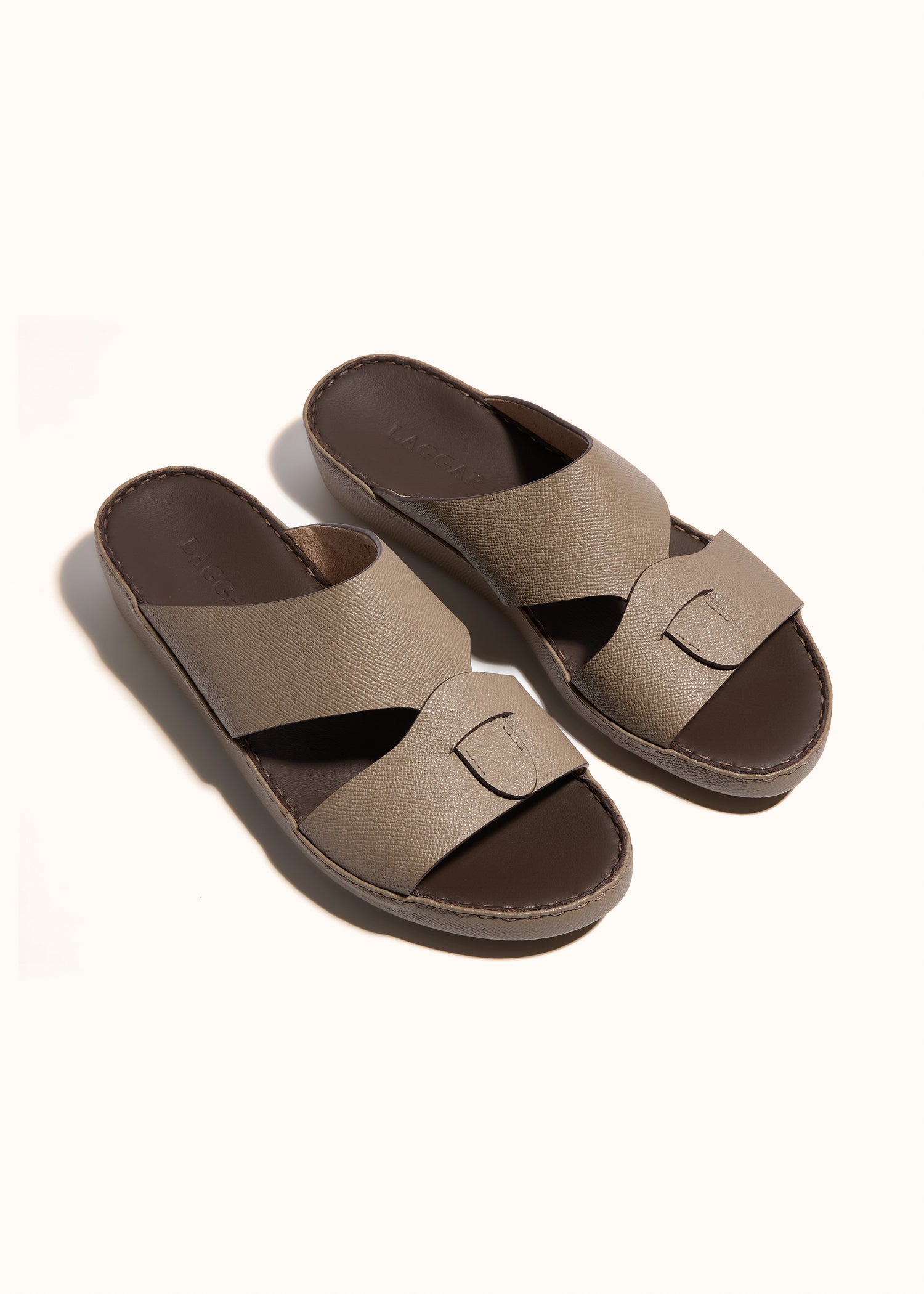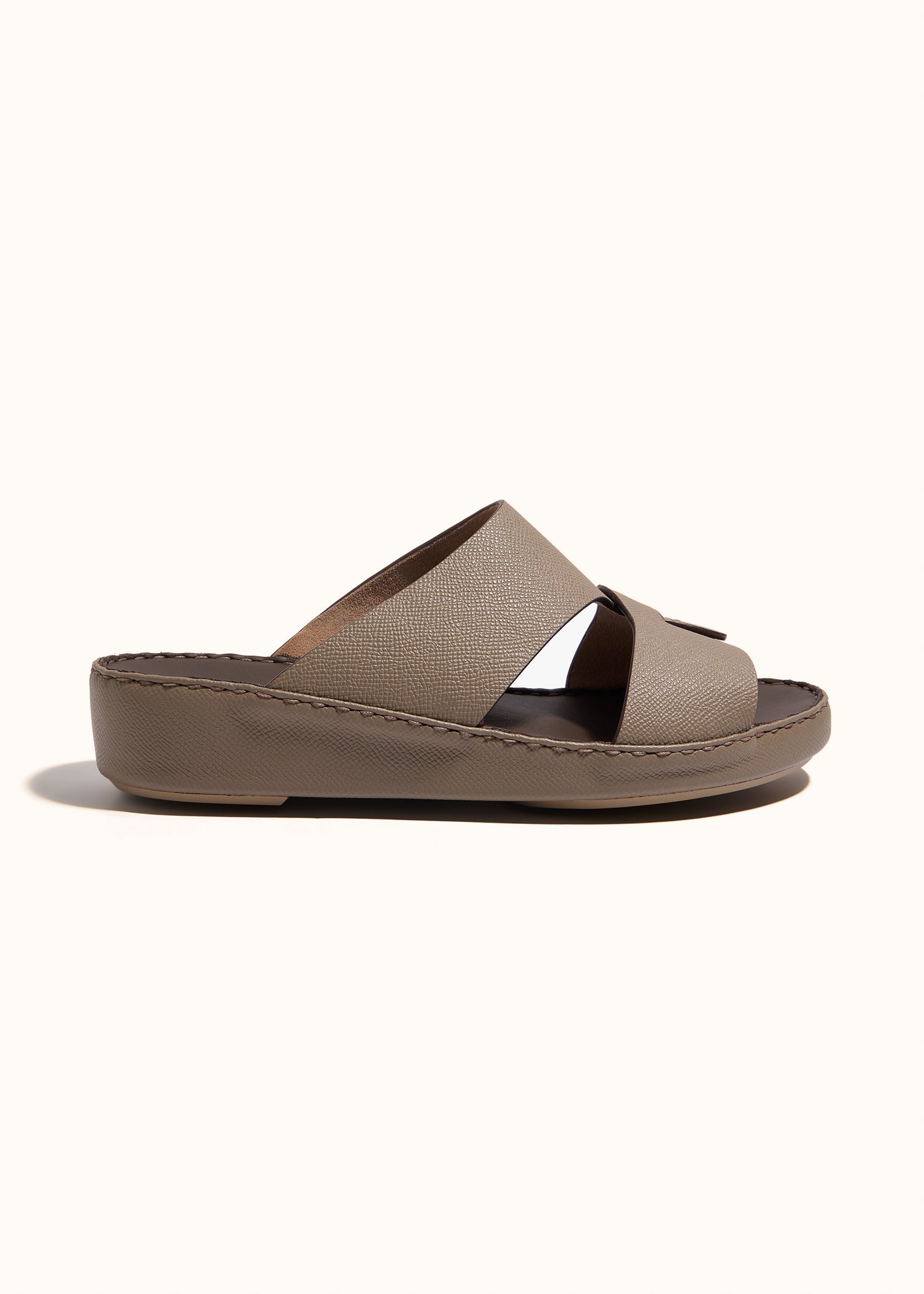 Envelope Belt Sandal crafted from textured Epsom leather, featuring a distinctive envelope-cut and contrast edge finishing. Minimal, modern, and refined. Designed for effortless everyday sophistication.