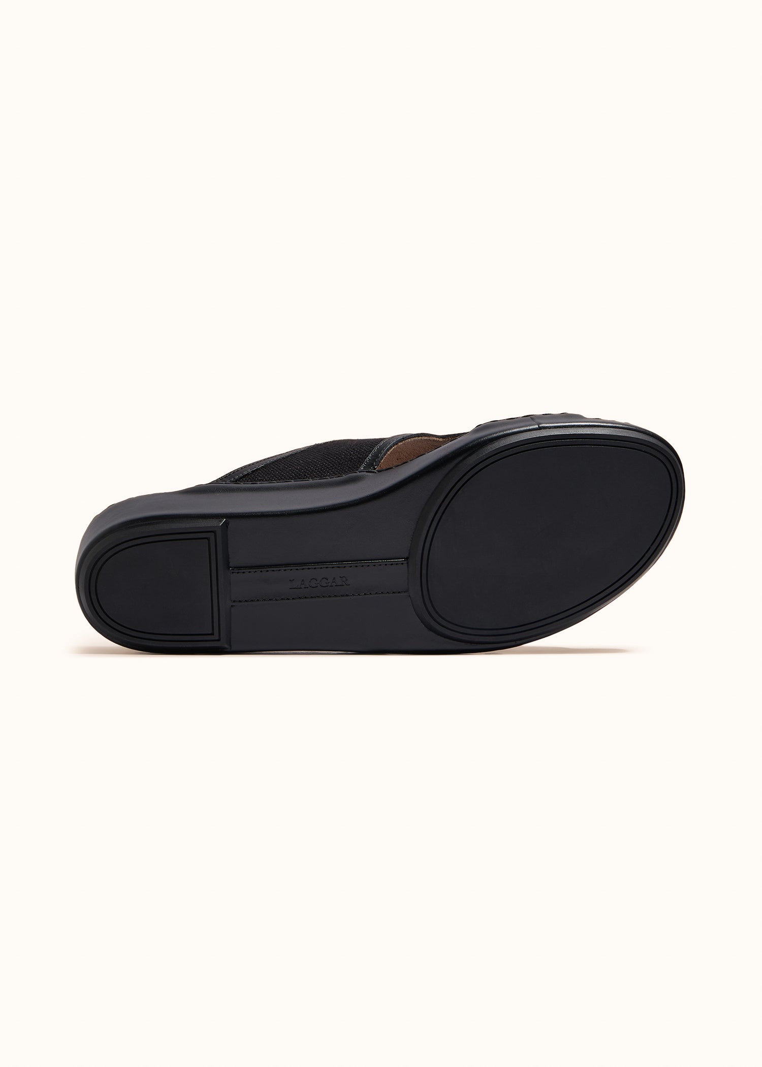 A bold expression of contemporary design, crafted with precision and sophistication. Its distinct leather-framed border, accentuated by fine stitching, creates a structured yet refined silhouette. Minimal in design but bold in presence, this sandal embodies modern luxury where craftsmanship meets effortless style.