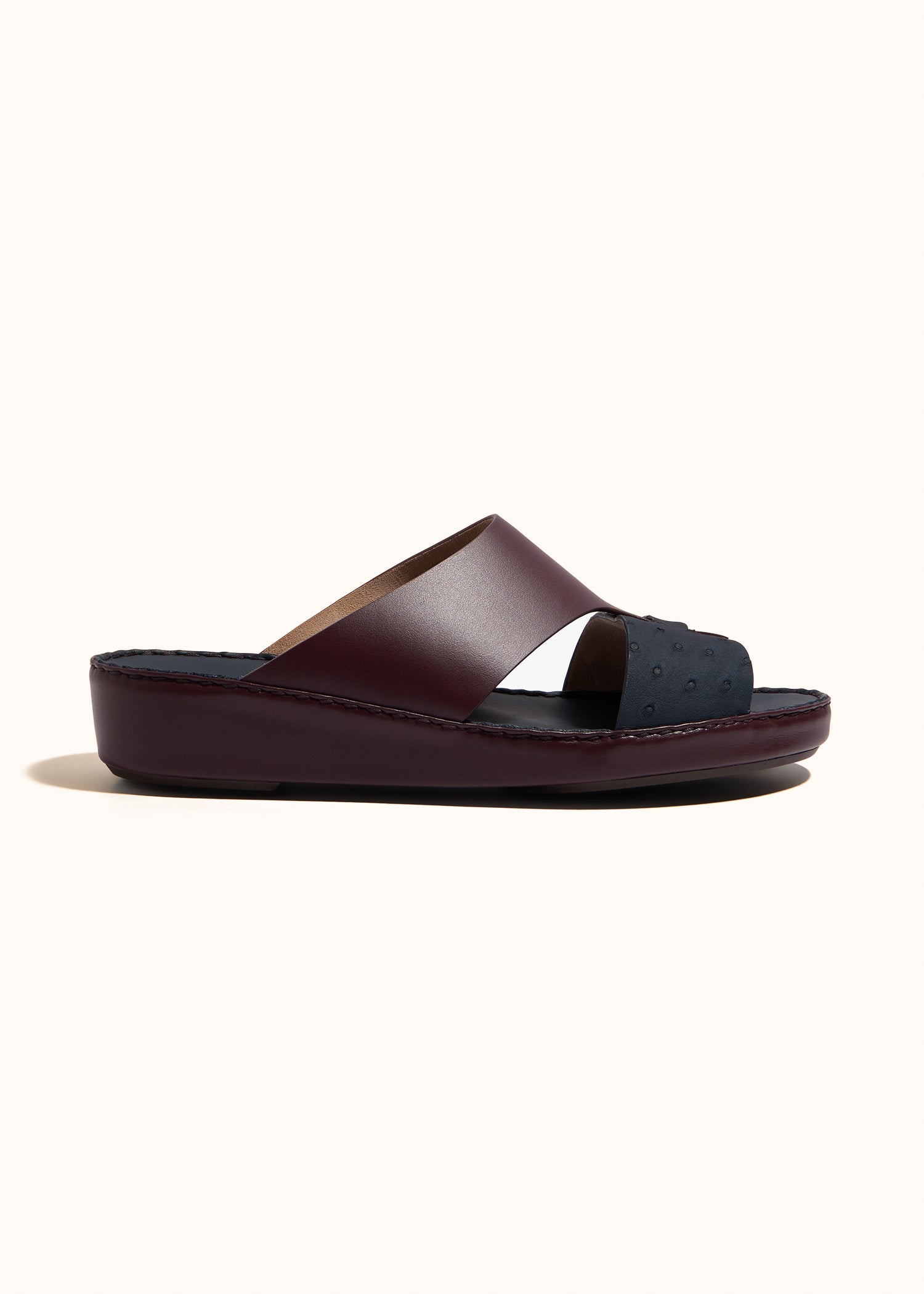 A refined contrast of Purecalf leather and ostrich skin, the Looped Belt Sandal embodies understated elegance. With its minimalist design and timeless appeal, it seamlessly transitions from formal to everyday wear, making it a versatile essential for any occasion.