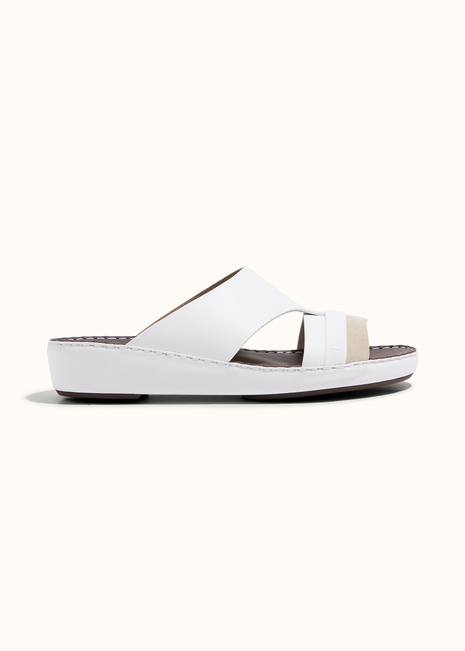 One of LAGGAR’s most renowned designs, the Rubber Grip Sandal is a bold expression of craftsmanship and innovation. The belt-cut silhouette is secured with a distinctive rubber grip, seamlessly blending PureCalf leather, Suede, and rubber for a striking mix of textures. Designed for both style and stability, this signature piece redefines contemporary footwear with its refined details and modern edge.