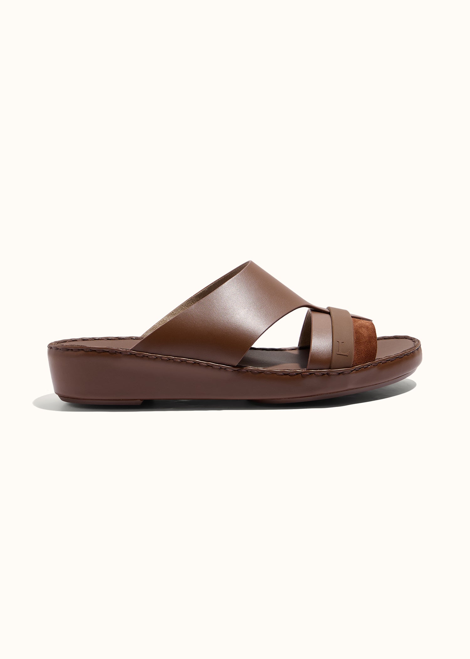 One of LAGGAR’s most renowned designs, the Rubber Grip Sandal is a bold expression of craftsmanship and innovation. The belt-cut silhouette is secured with a distinctive rubber grip, seamlessly blending PureCalf leather, Suede, and rubber for a striking mix of textures. Designed for both style and stability, this signature piece redefines contemporary footwear with its refined details and modern edge.