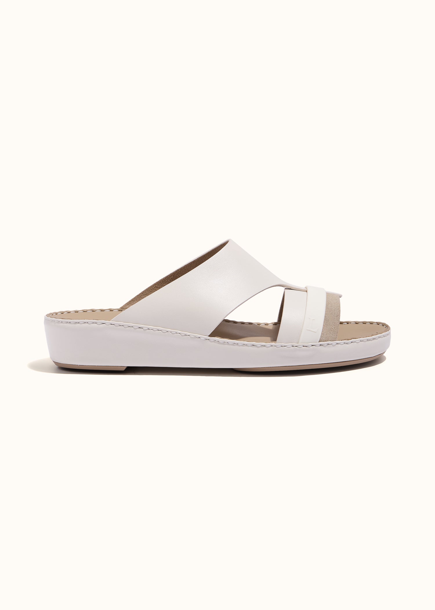 One of LAGGAR’s most renowned designs, the Rubber Grip Sandal is a bold expression of craftsmanship and innovation. The belt-cut silhouette is secured with a distinctive rubber grip, seamlessly blending PureCalf leather, Suede, and rubber for a striking mix of textures. Designed for both style and stability, this signature piece redefines contemporary footwear with its refined details and modern edge.