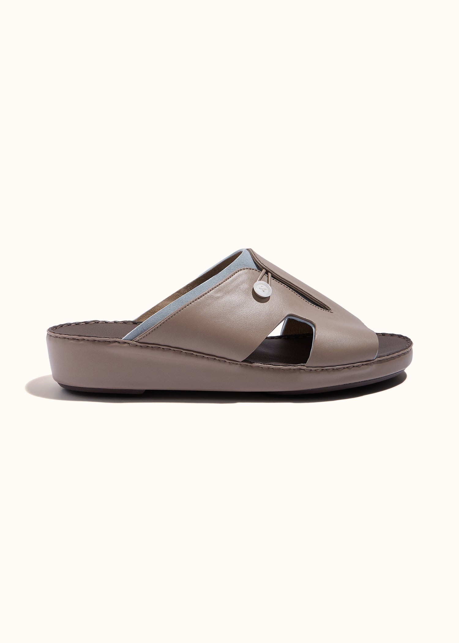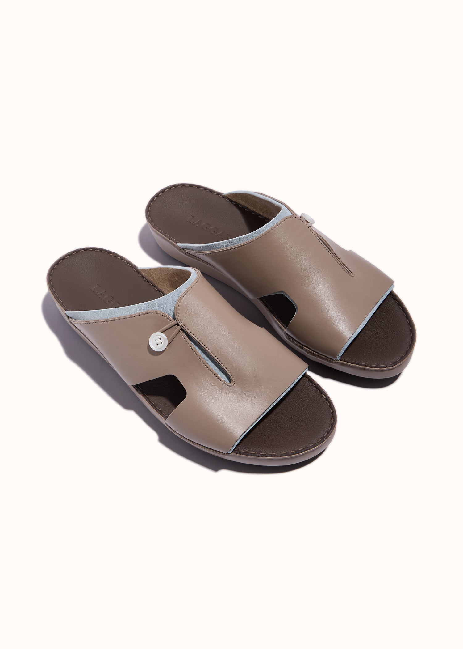 The Tightened Square Cut Sandal in Topo embodies a refined balance of structure and creativity. Defined by its distinct two-layer design, it reveals a subtle blue suede contrast that enhances depth and dimension. A white button accent adds a modern touch, bringing character to its minimalist silhouette. Designed for those who appreciate clean lines and thoughtful details, this sandal offers a fresh expression of contemporary sophistication.
