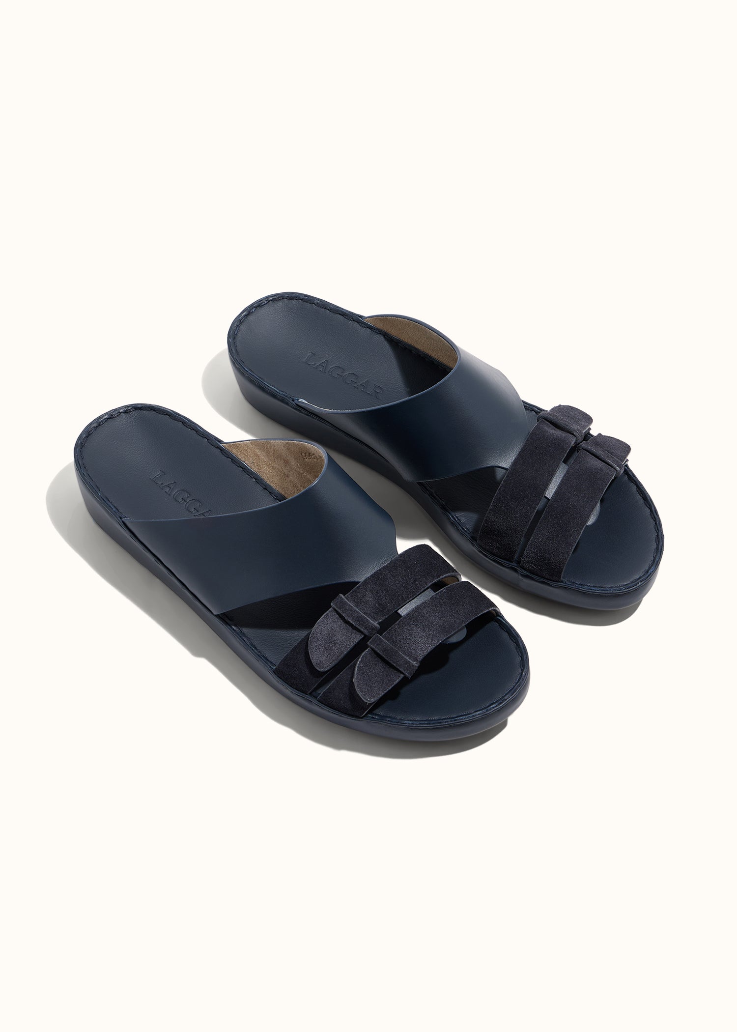 Defined by balance. The Triad Sandal features three belt elements combined with clear purpose. Two framing and securing the central strap. The result is structured, contemporary, and confidently bold. A refined evolution of Laggar’s signature belt identity.