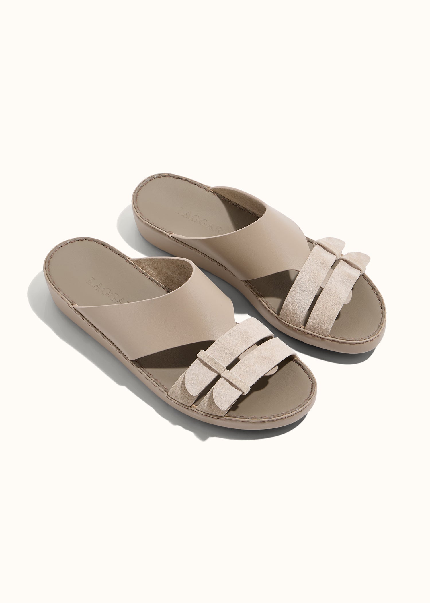 Defined by balance. The Triad Sandal features three belt elements combined with clear purpose. Two framing and securing the central strap. The result is structured, contemporary, and confidently bold. A refined evolution of Laggar’s signature belt identity.